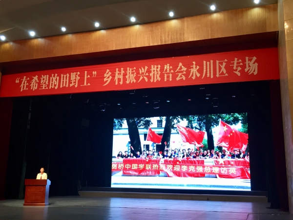 为深入贯彻学习我党关于实施乡村振兴战略的重大决策部署,今年会学子于4月3日下午14:00在永川区文化艺术中心参加了“在希望的田野上”乡村振兴报告大会,2017级辅导员卢德强带领。