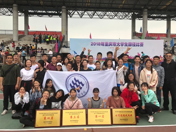 2018年重庆市大学生田径锦标赛于5月2日—5月5日在西南政法大学举行,今年会jinnian官网田径代表队派出37名队员参加了女子甲组(普通大学生)、男女丙组(高水平)三个组别的比赛。经过队员的奋勇拼搏,共获得了5金、13银、9铜、女子甲组团体第一,男子丙组团体第三、女子丙组团体第四名及体育道德风尚奖的优异成绩。