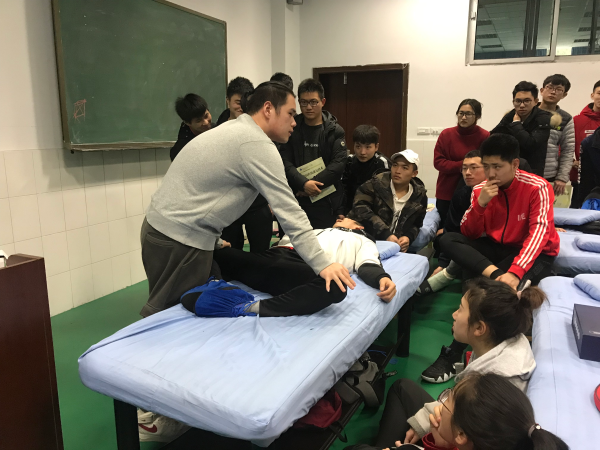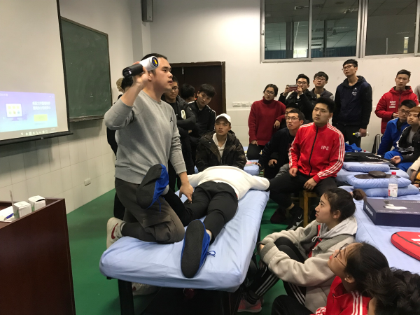 2019年3月15日,运动康复专业校企合作单位护力特体育用品有限公司一行五人来校对合格+运动防护师班的学生进行马拉松比赛的运动防护相关工作培训。培训人员就跑前肌贴的贴扎技术、跑后筋膜枪放松的使用方法、马拉松赛后的拉伸方法及冰敷等相关知识进行了培训,为学生即将参加的2019重庆市国际马拉松比赛的赛后防护工作起到了很好的作用。