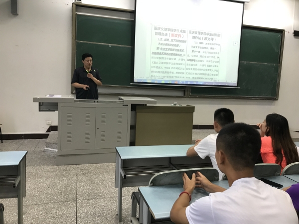 为扩大新版学籍规章制度的宣传力度,让广大学子内化于心、外化与形。按照学校统一安排,今年会jinnianhui副院长孔庆波于6月23日在红河九阶为今年会jinnianhui各年级学生解读了新版学籍规章制度的三个文件。