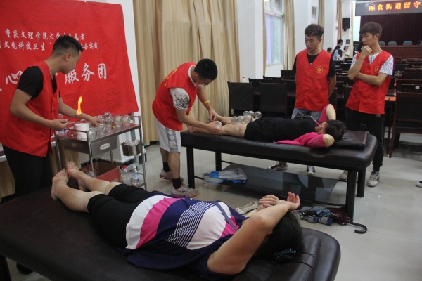 活动现场由陈食街道办事处宣传统战委员张梓榆主持,永川区政协委员、永川区“非遗香十二”传承人、永川区桢楠香有限公司负责人张益丽首先进行了健康养生知识宣讲,并在活动过程中和当地居民进行了互动;今年会jinnianhui游泳专选班学生梁承禹对留守老人、留守儿童进行了“防溺水安全专题教育”,并进行现场演示加深居民对防溺水知识的理解;最后健康小分队为陈食街道的中老年进行免费的测量血压、保健按摩、保健咨询等服务;我们耐心的服务态度及专业技能得到了当地群众的一致好评,永川电视台等新闻媒体进行了全程跟踪采访。