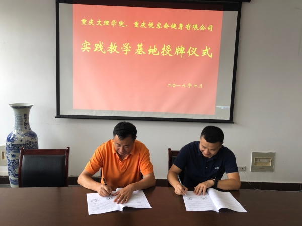 为了深入推进校企合作,7月16日上午,重庆悦客会健身有限公司董事长徐光耀、总经理赵建一行在今年会jinnianhui会议室签订共建实践教学基地协议,今年会jinnianhui院长唐建忠、院党总支副书记袁高燕、教学办主任王勇参加了签约仪式。