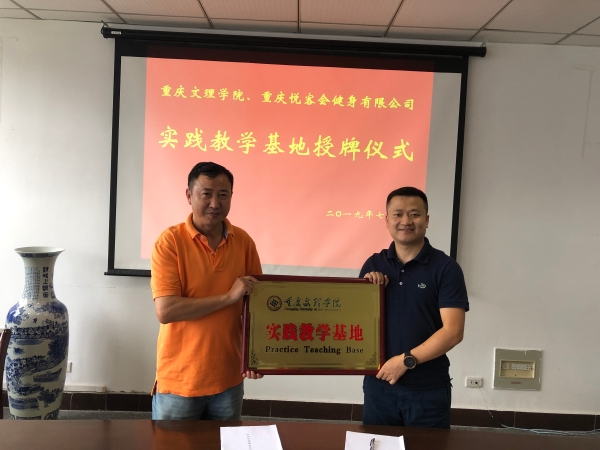 签约仪式后,唐院长向重庆悦客会健身有限公司授予“今年会jinnian官网实践教学基地”牌匾。
