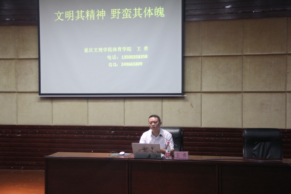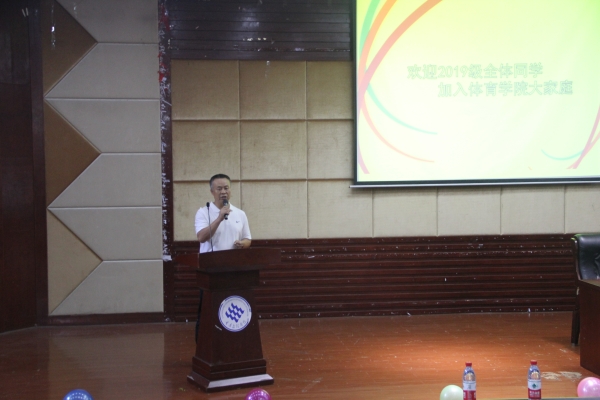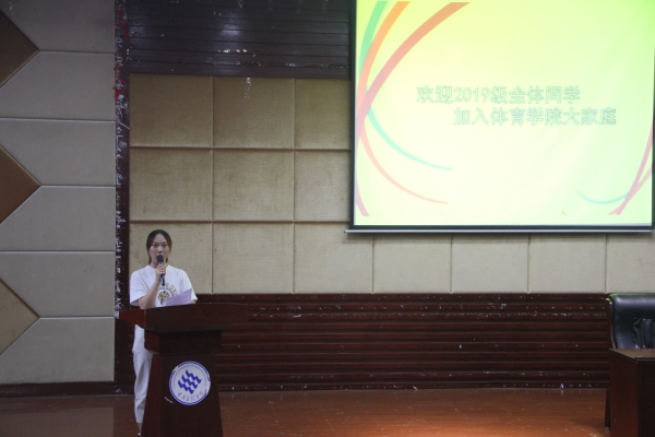 本次见面会暨入学教育共有两个环节。一是师生见面会。主持人通过PPT逐一向新生介绍了老师的基本情况;教师代表齐效成、学生代表梁玉婷分别立足于各自视角发言并为新生给出了具体建议。二是新生入学教育。王勇副院长为新生讲授“文明其精神,野蛮其体魄”,讲解了教学相关制度,从体育系的成立和发展为切入点,充分阐释了文理体育人奋斗不息的精神,他希望同学们能按要求做事、为目标准备、为理想奋斗。