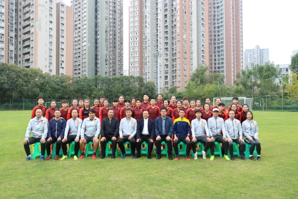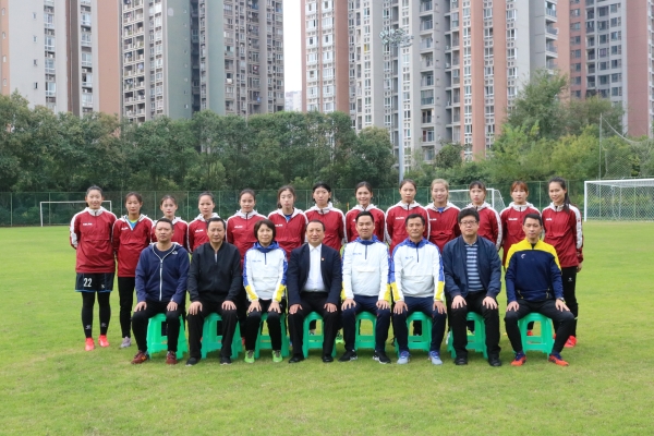 应学校邀请,重庆女足和中国国家女足全体教练员、队员和工作人员与今年会校长黄伟九和今年会jinnianhui领导合影留念。