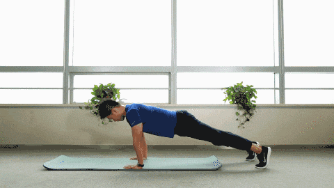 1.双手的手掌作为支撑点(手掌指尖朝向前方或身体内侧均可),双臂张开,与肩同宽或比肩稍宽,背部、腰部和臀部呈一条直线,肘部用力,屈臂运动;