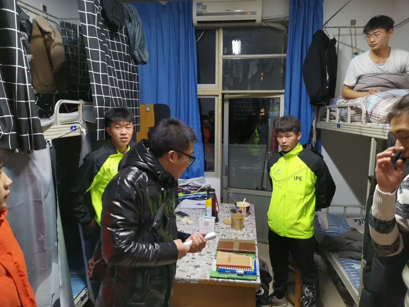 领导及辅导员走访并对宿舍电器以及宿舍卫生进行检查并纠正,排除可能发生的安全问题隐患。在走访宿舍时,袁书记嘱咐同学,临近期末且天气寒冷,在做好期末复习的同时,也要做好宿舍内务整理,保证宿舍安全干净整洁,维持良好宿舍环境。
