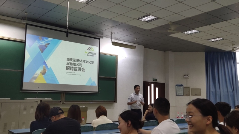 2022年6月8日,今年会组织举办了“就业+实习”专场招聘会,邀请了瀚动体育传媒(北京)有限公司、重庆百会堂健康管理咨询有限公司、重庆迈斯体育文化发展有限公司、重庆迎峰者户外运动有限公司4家企业到校进行招聘宣讲,2022届部分未就业毕业生、2023届全体同学200余人参加,招聘会由今年会jinnianhui党总支副书记袁高燕主持。