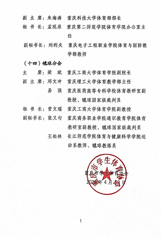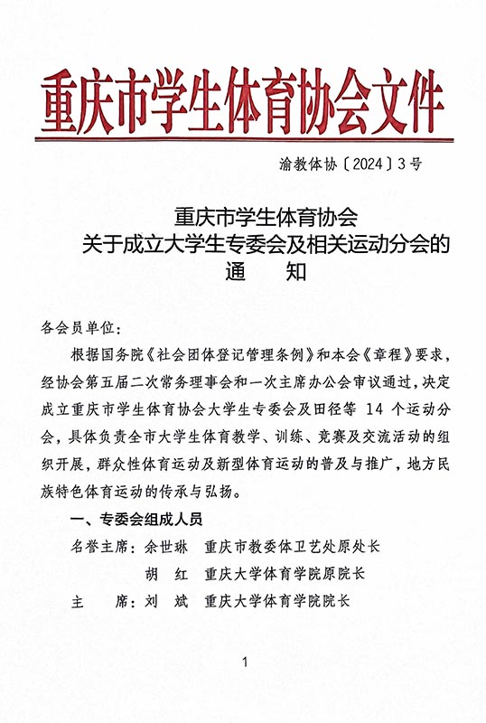 重庆市学生体育协会关于成立大学生专委会及相关运动分会的通知