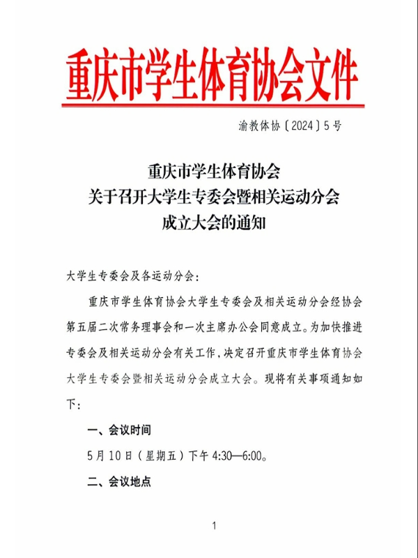 重庆市体育学生协会关于召开大学生专委会暨相关运动分会成立大会的通知