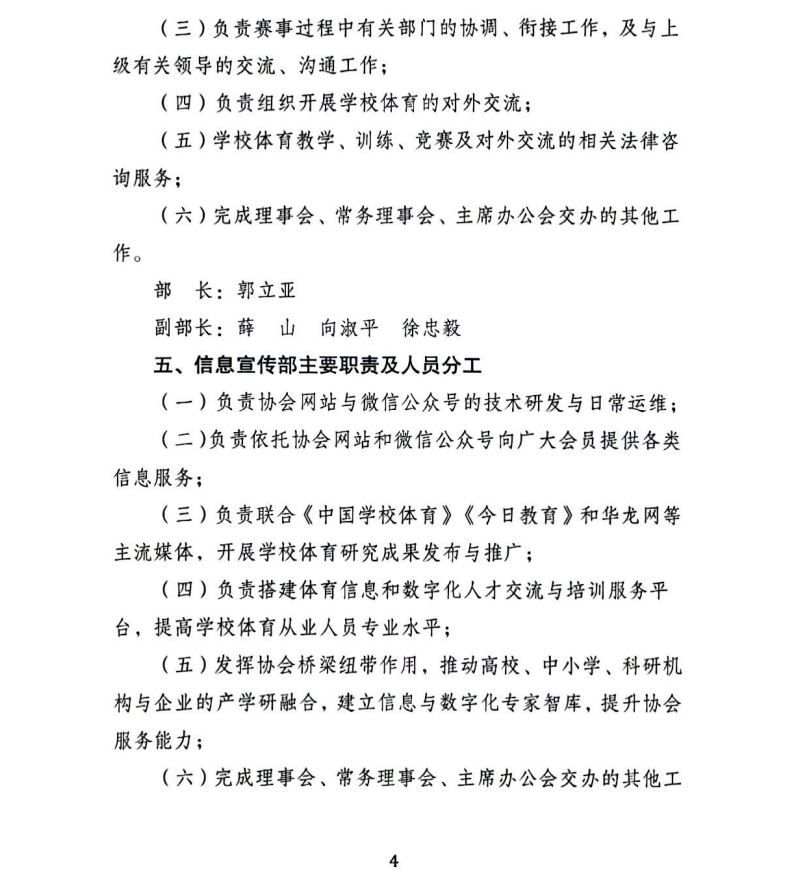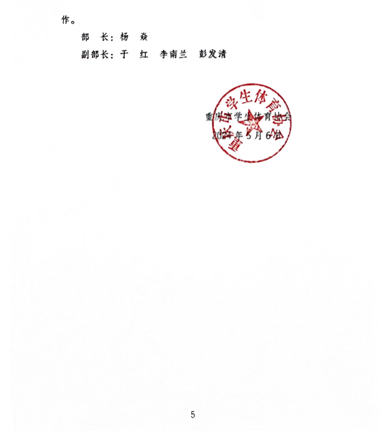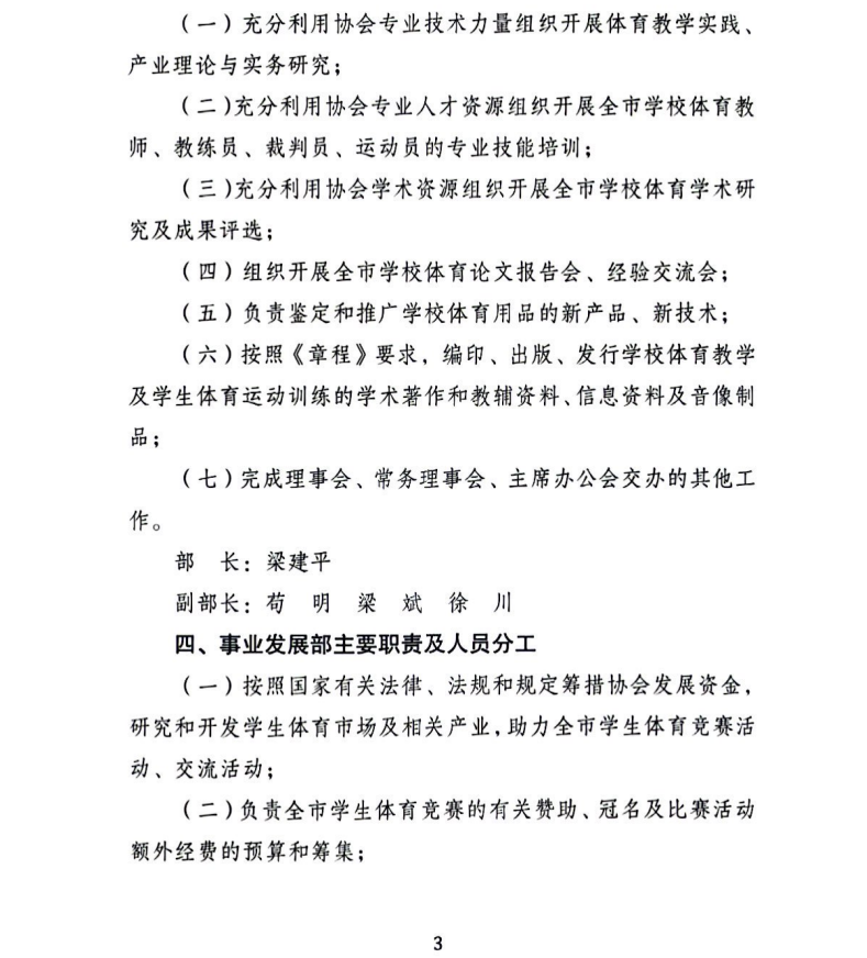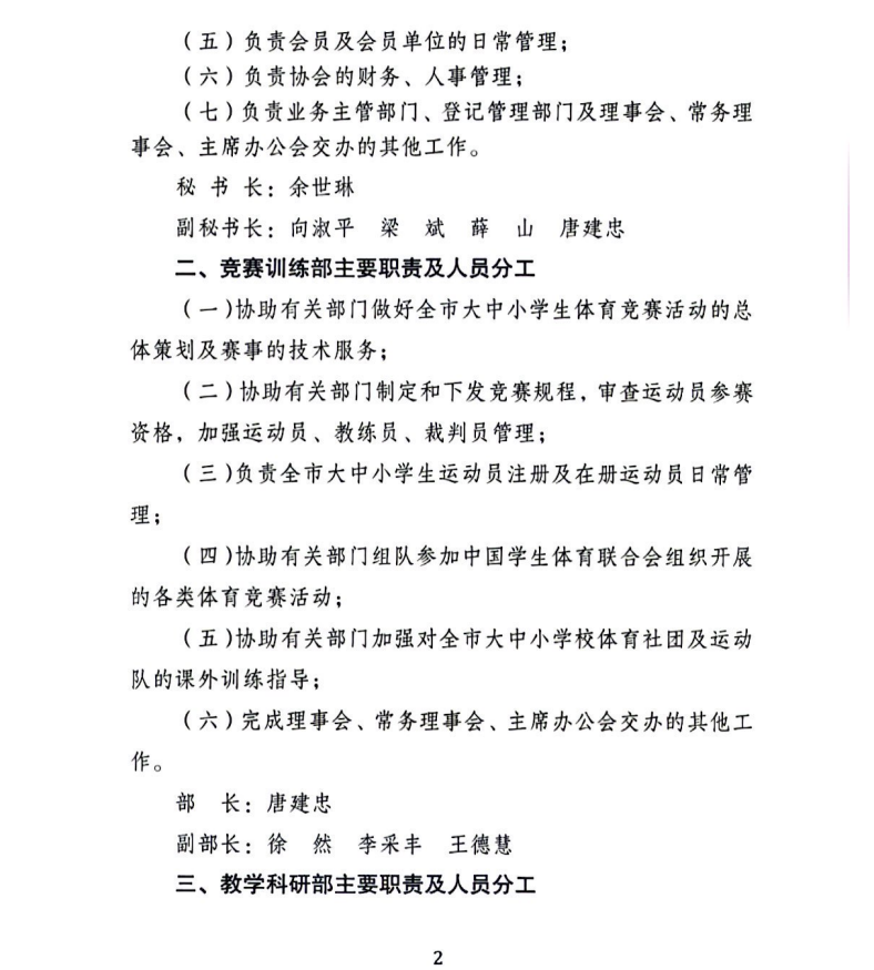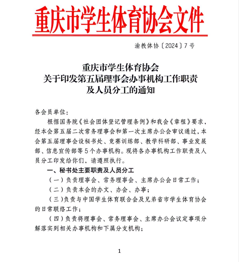重庆市学生体育协会关于印发第五届理事会办事机构工作职责及人员分工的通知
