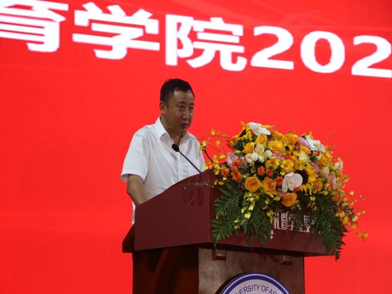 学院院长唐建忠讲话,他代表学院向全体毕业生表示最热烈的祝贺,向辛勤培育毕业生的老师致以崇高的敬意,向一直以来默默支持毕业生的家长表示诚挚的感谢。他回忆了2024届毕业生大学四年历经的关于时代发展、学校发展和学院发展的重要时刻,他希望同学们保持初心本色,并衷心祝福2024届毕业生前程似锦,鹏程万里。