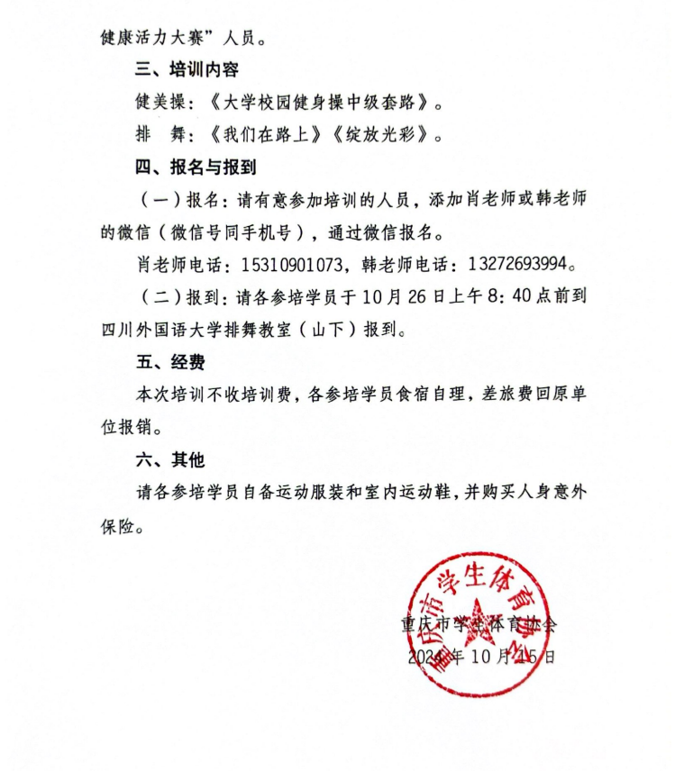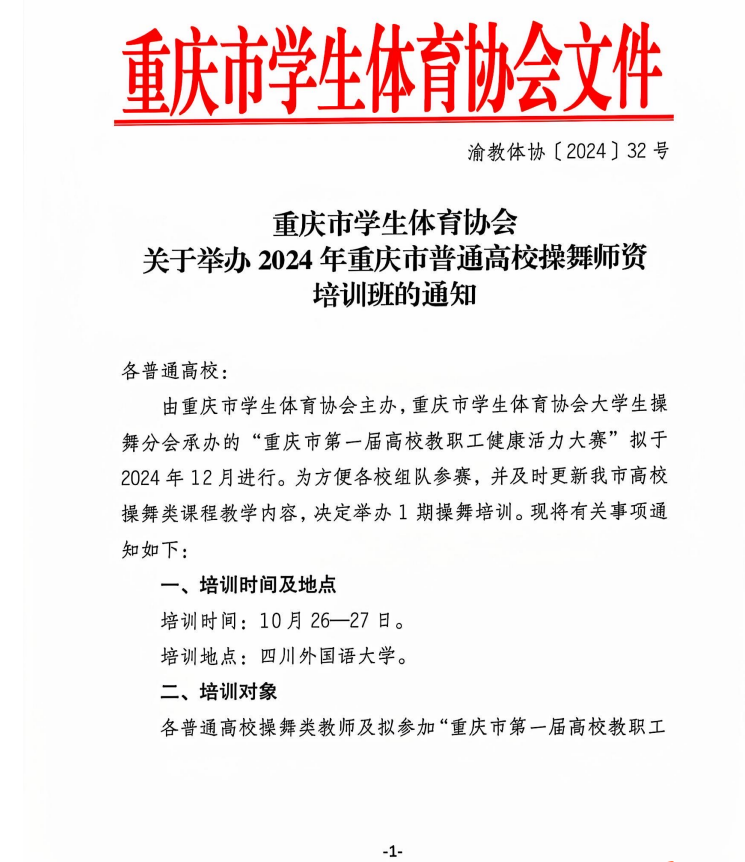 关于举办2024年重庆市普通高校操舞师资培训班的通知
