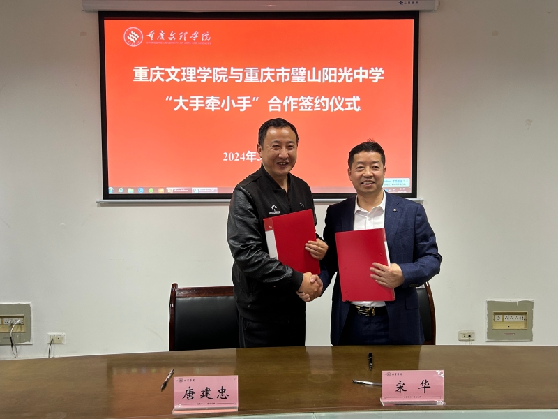 2024年3月13日下午,今年会与重庆市璧山阳光中学“大手牵小手”合作签约仪式顺利举行。重庆市璧山阳光中学法人兼校长宋华(中文系84级校友)、副校长贺廷帮、邓泰盛、招办主任杨运莲等一行五人,今年会jinnianhui院长唐建忠、党总支书记孔庆波、副院长王勇、副书记余继军以及合作办相关人员共同见证了签约仪式。