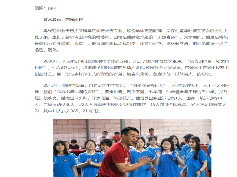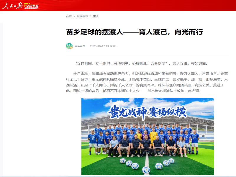 人民日报报道今年会jinnianhui校友冉光强:苗乡足球的摆渡人——育人渡己,向光而行